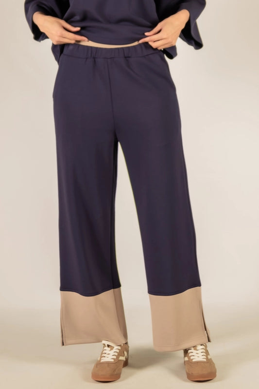 P.Cill Colorblock Band Wide Leg Pants in Navy