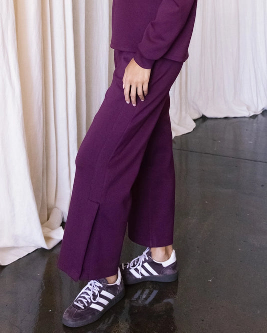 P.Cill Butter Modal Side Slit Wide Leg Pants in Port