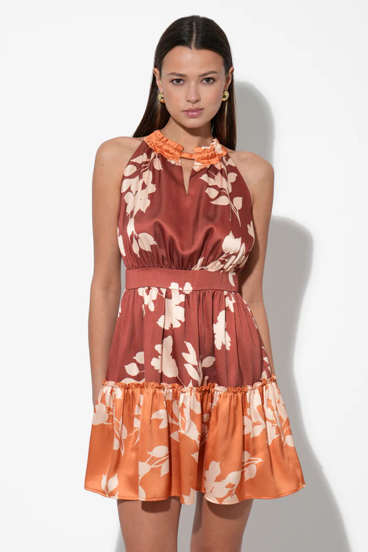 Adelyn Rae Traci Two-Toned Halter Dress in Marigold Brown
