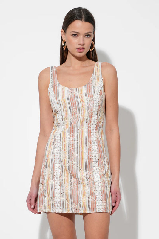 Adelyn Rae Jace Embroidered Mini Dress in Multi Rust