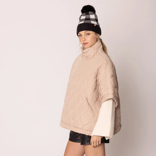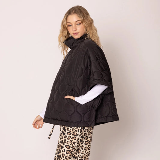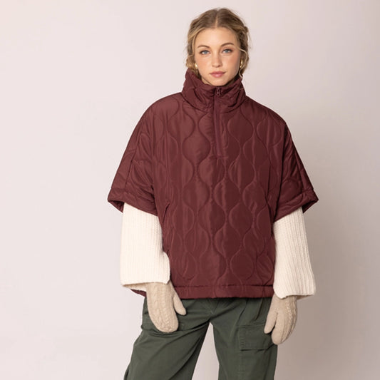 Ovesized Quilted Half Zip Poncho in Burgundy