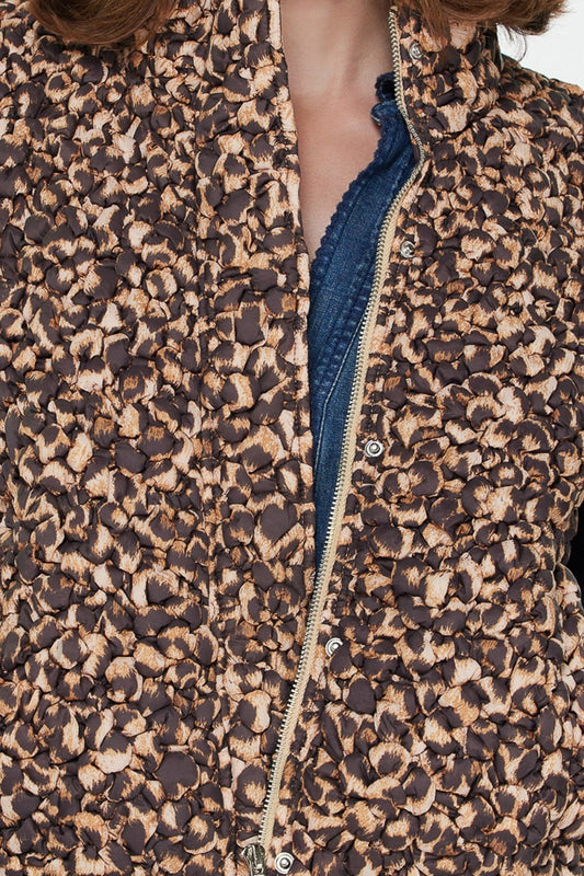Zip Front Cropped Faux Fur Jacket in Brown Leopard