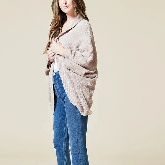 Faux Fur Trimmed Cardigan Cocoon in Black