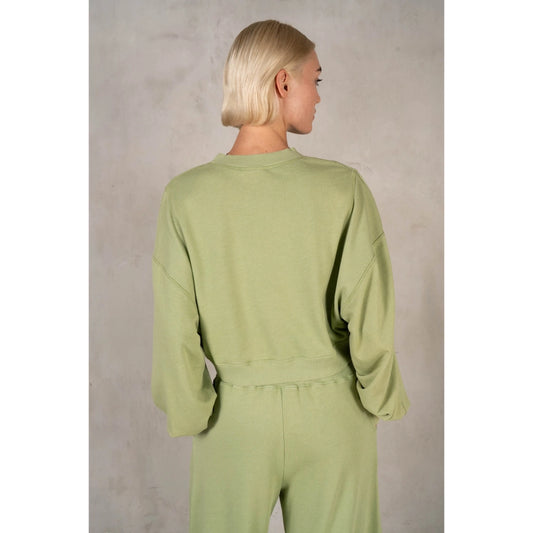 Mineral Wash Cropped Sweatshirt Set in Sage