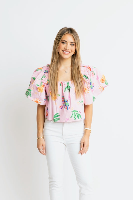 Karlie Square Neck Ruffle Top in Toucan Fruit